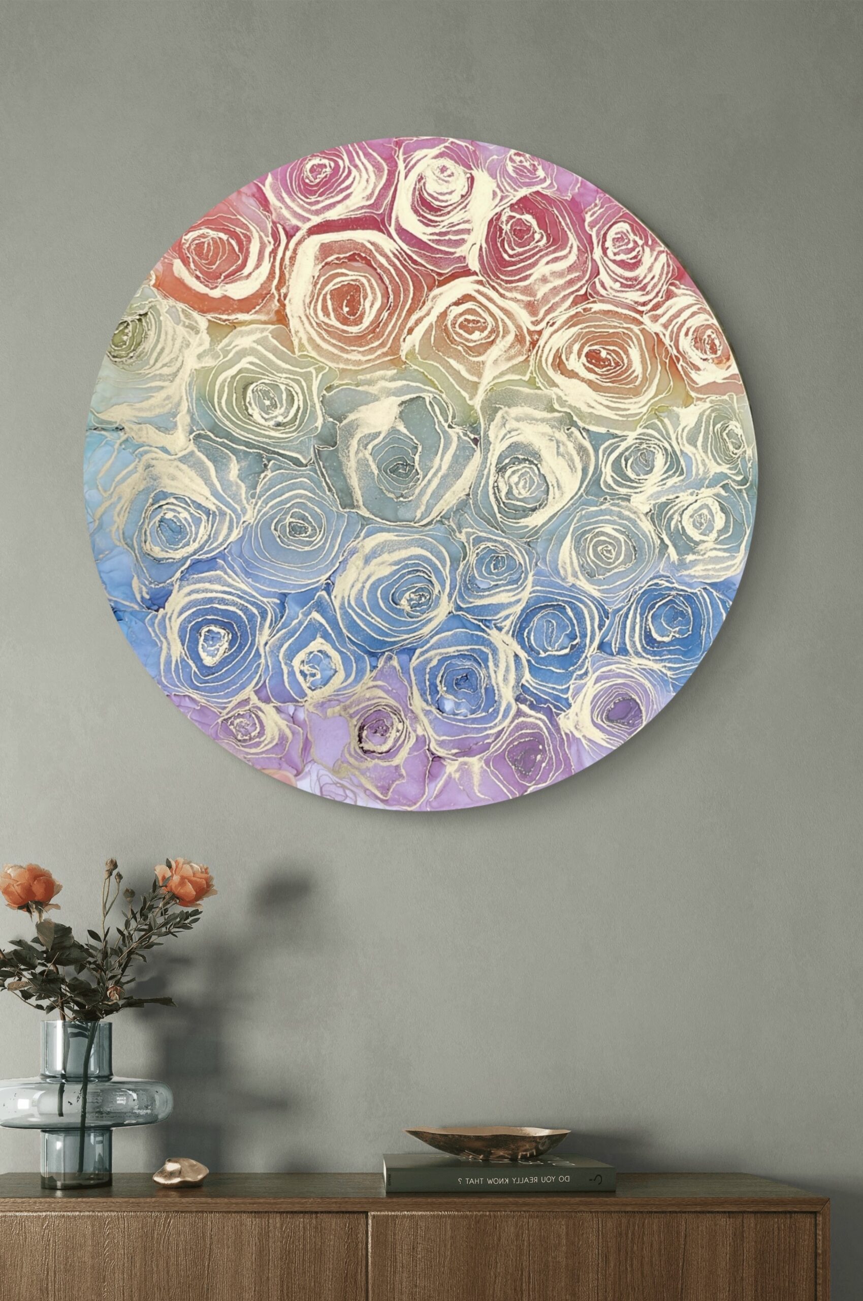 Rainbow Roses is a celebration of every shade love can take—passionate reds, tender blues, hopeful greens, and everything in between. It tells the tale of a garden where every rose is a keeper of love and the golden shimmer a sunlit secret—soft, sacred, and meant only for the soul that dares to pause and listen. This artwork isn’t just a bouquet; it’s a reminder that beauty thrives in diversity, that joy comes in many colours, and even the wildest hearts deserve to bloom.