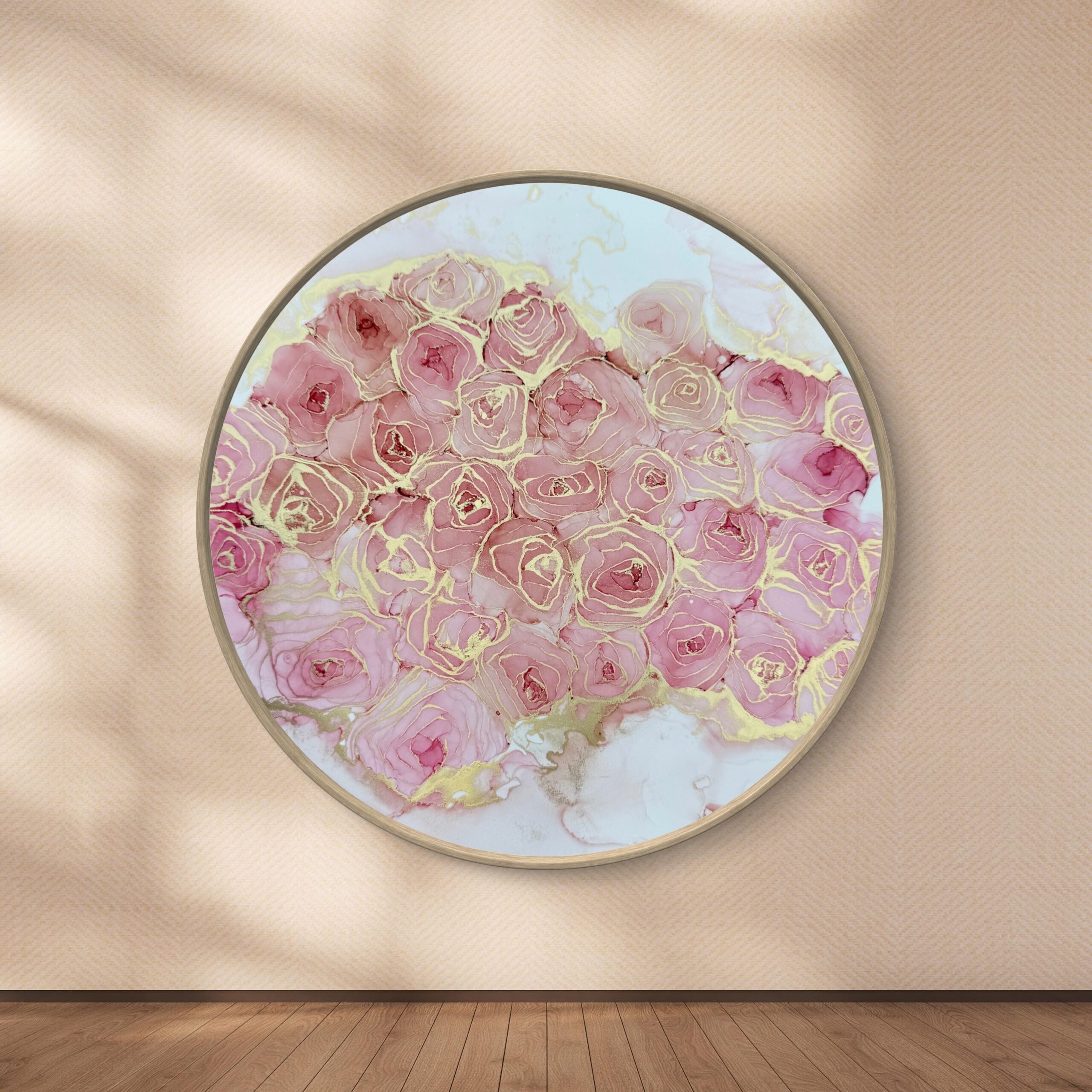 Rosy Dreams is a love letter painted in blush tones and golden sighs where each petal feels like a promise and every shimmer like a secret. The quiet negative space on the top and bottom gives the blooms room to breathe, like the kind of love that is never rushed, but patiently nurtured. It’s a painting that doesn’t just hang on a wall—it lingers, like the trace of kiss, like a familiar silence that speaks volumes.